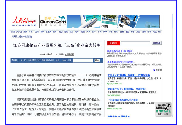 人民網(wǎng)、新華網(wǎng)——江蘇同康搶占產(chǎn)業(yè)發(fā)展先機“三高”企業(yè)奮力轉型