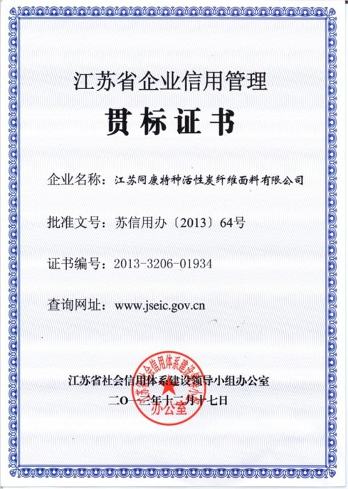 近日,同康公司通過江蘇省社會信用體系建設(shè)領(lǐng)導小組辦公室嚴格的審核評定,榮獲“江蘇省企業(yè)信用管理貫標企業(yè)”榮譽。